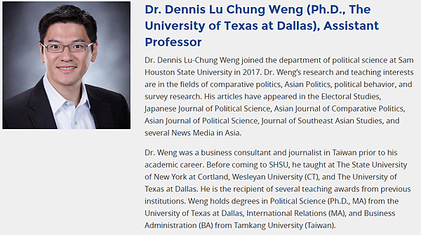 PS: SHSU 政治系系網的個人簡介: